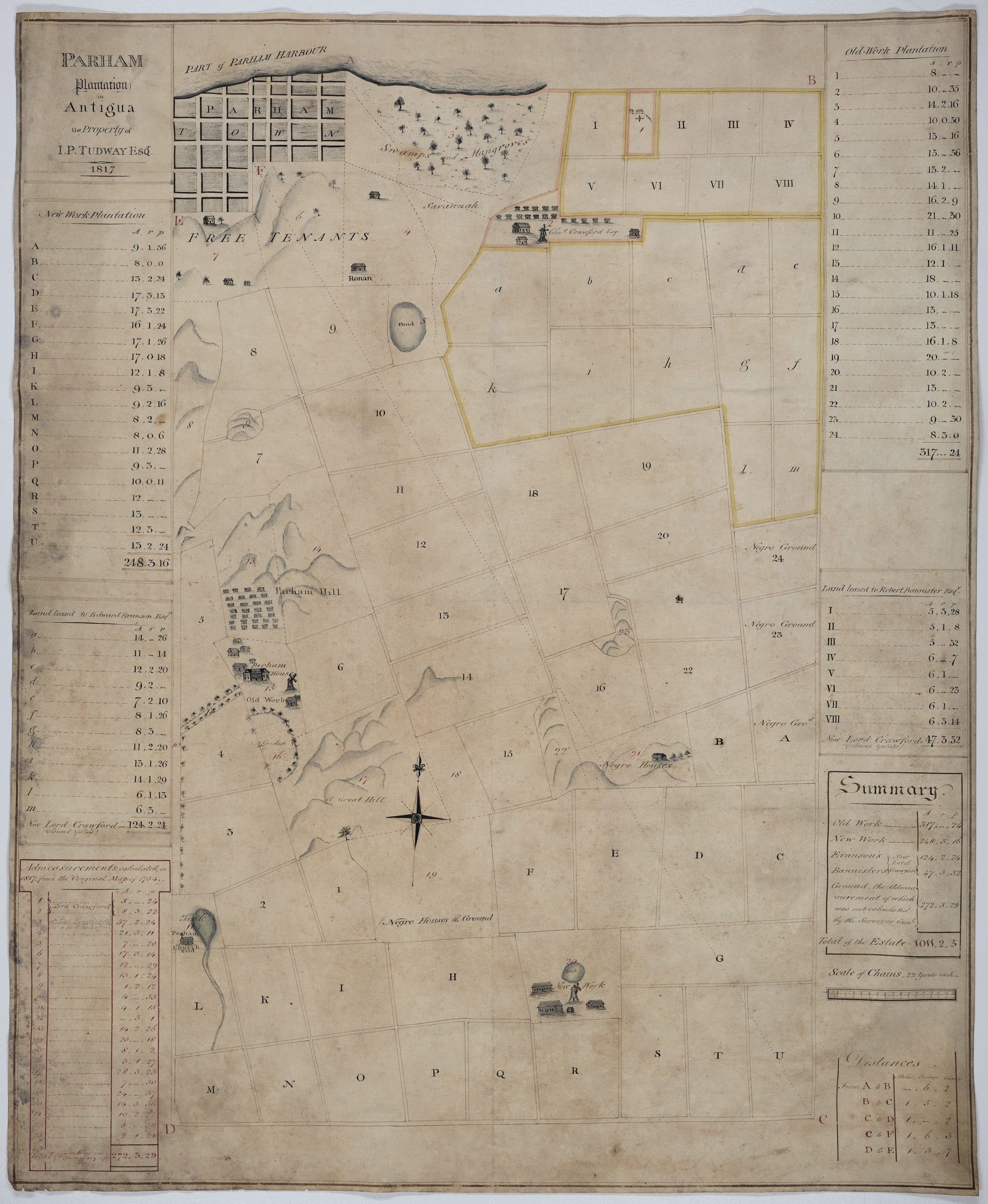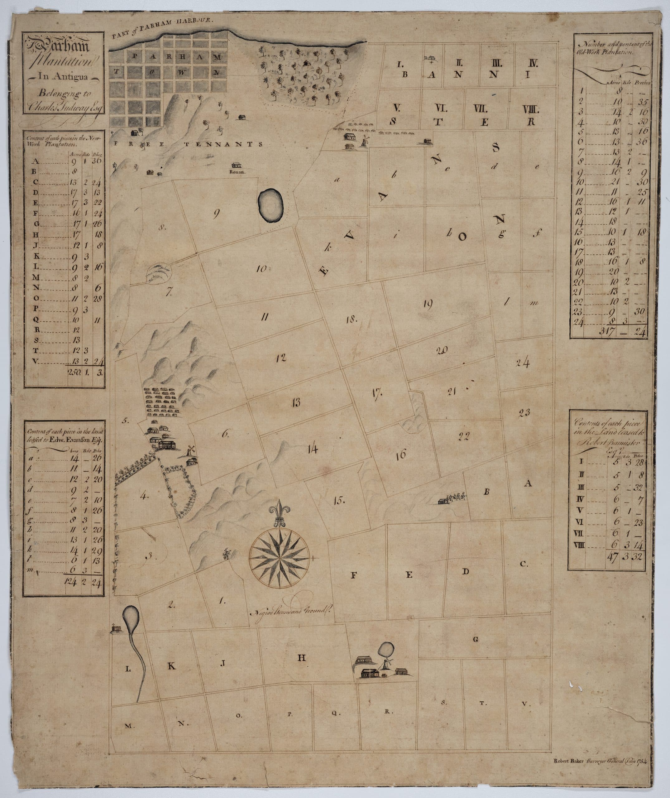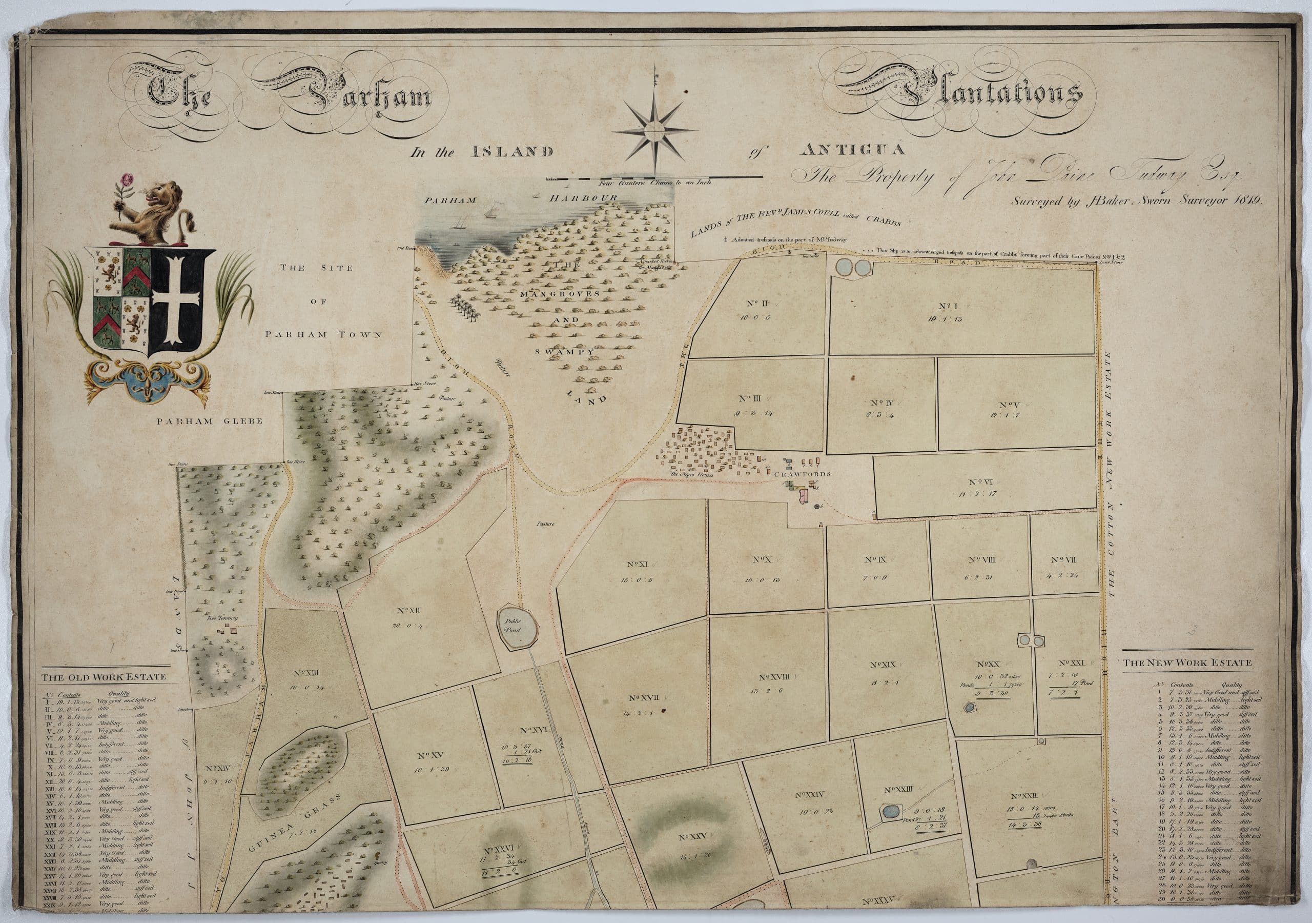 The Plantation of Mrs Rachel Tudway and Clement Tudway Esq. commonly called or known the Name of Parham Plantation in the Island of Antigua in America, surveyed by Robert Baker in 1730