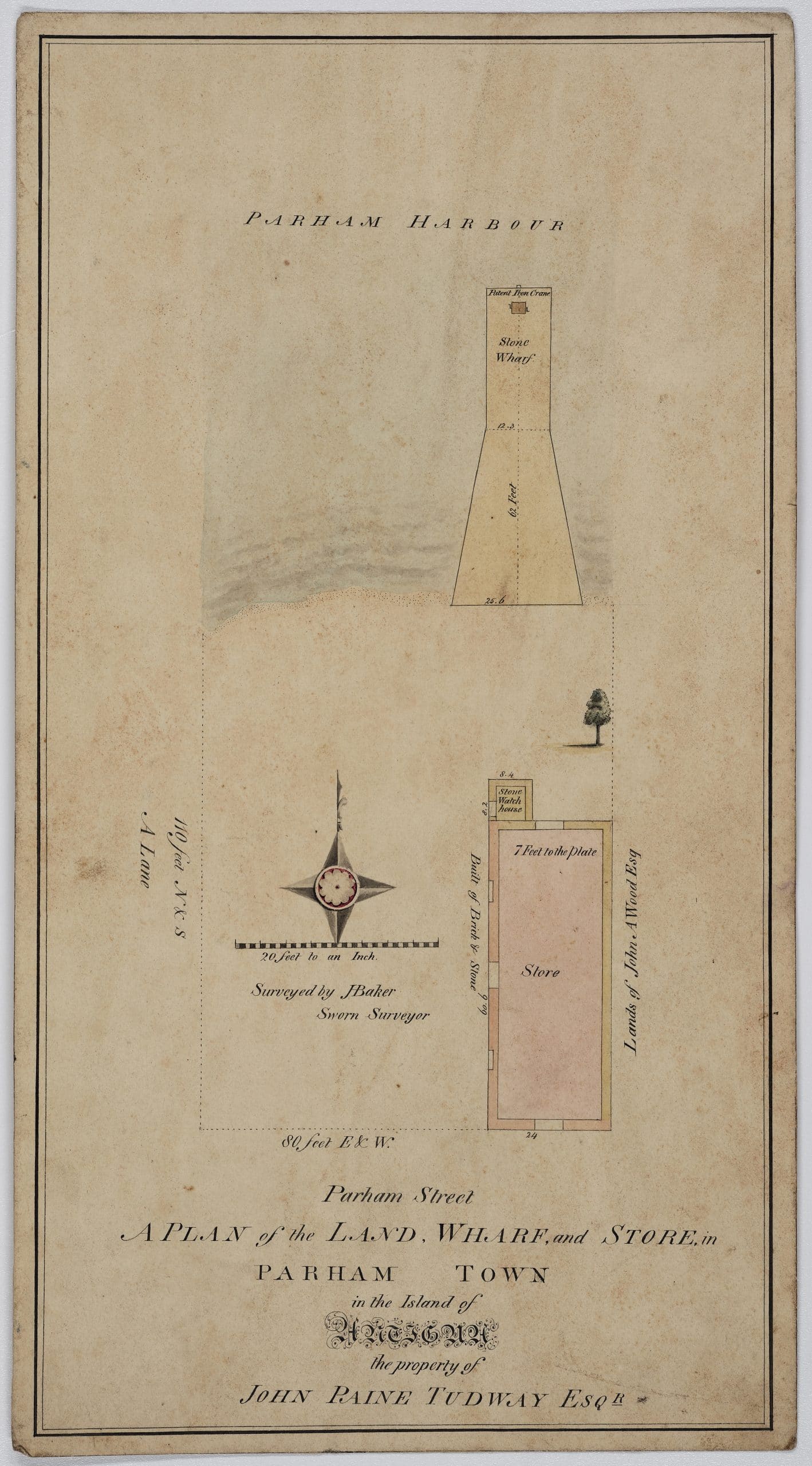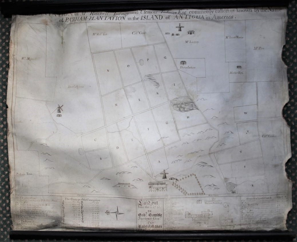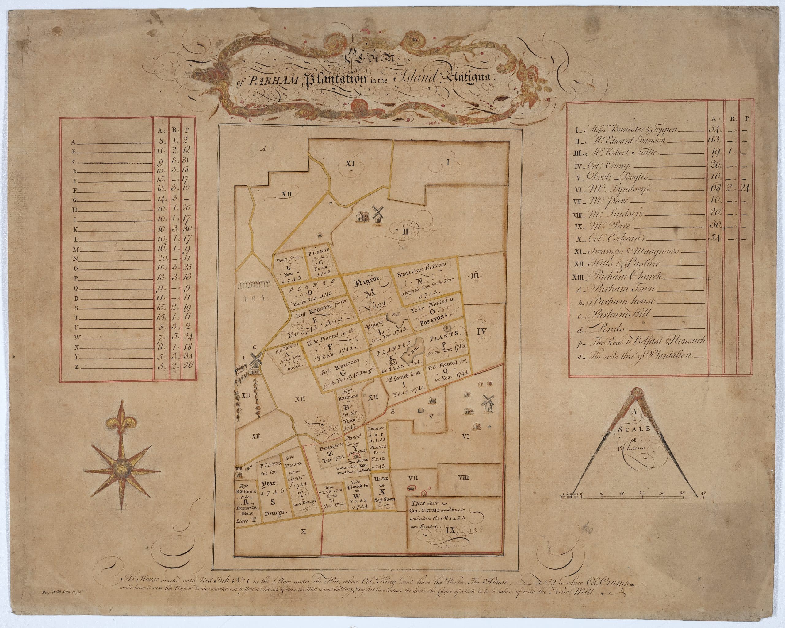 The Plantation of Mrs Rachel Tudway and Clement Tudway Esq. commonly called or known the Name of Parham Plantation in the Island of Antigua in America, surveyed by Robert Baker in 1730